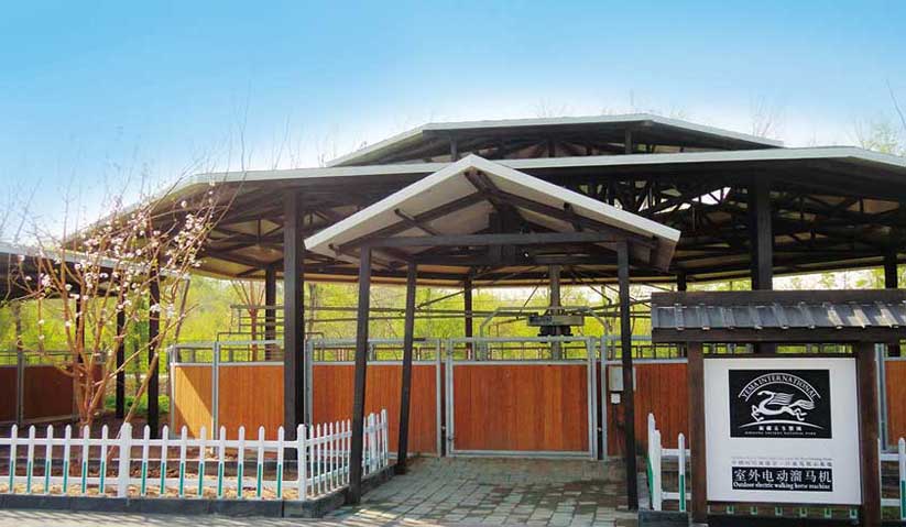 高級型遛馬機、標準型遛馬機、簡易型遛馬機、遛馬機內外圈圍欄、全封閉屋頂、半封閉屋頂賽馬馬閘與計時系統